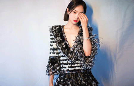 宋茜变身“锁骨精” 深V羽毛短裙高贵优雅