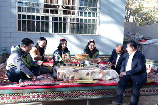 在玫瑰产业基地,佟丽娅仔细询问了玫瑰花产业当前的发展状况和未来规划,并和贫困户员工一起,亲手种下了两株玫瑰花。在得知当地在6年前还是一片荒漠,玫瑰栽种技术的引进和发展为当地带来了巨大的变化时,佟丽娅万分感慨,这正是“脱贫路上,沙漠玫瑰开出幸福之花”。随后,佟丽娅去到了当地农户家中,详细了解玫瑰花后期的加工制作的情况,还跟当地旅游局的领导以及调研专家一同探讨了于田县的产业扶贫和旅游扶贫模式。期待在大家共同努力下,未来可以将于田县建设得越来越好。