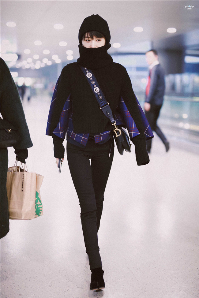 频繁现身机场的王子文私服造型是极尽盐甜之道,前日启程look是一身率性洒脱的酷美风搭配上身,撞上内里的红色百褶短裙;回程则是全身的黑色系穿搭,上衣的格纹拼接设计尤为吸睛,玩转全黑look成为行走的“时髦精”,将既仙又酷的时尚元素糅合的恰到好处。