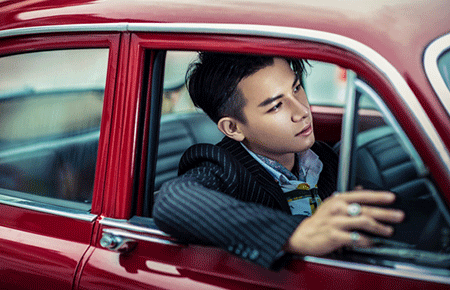 柏辰身着蓝色西服套装搭配复古印花衬衫,实力彰显怀旧经典的轻熟时尚,魅力十足。深红色的老爷车与灰绿色的东南亚风情建筑交相辉映......
