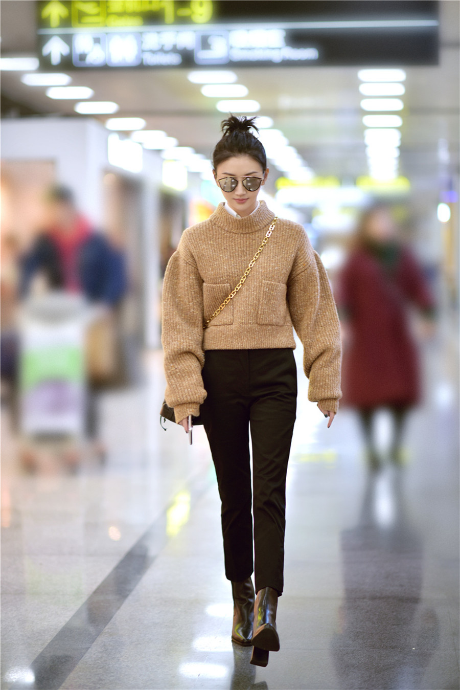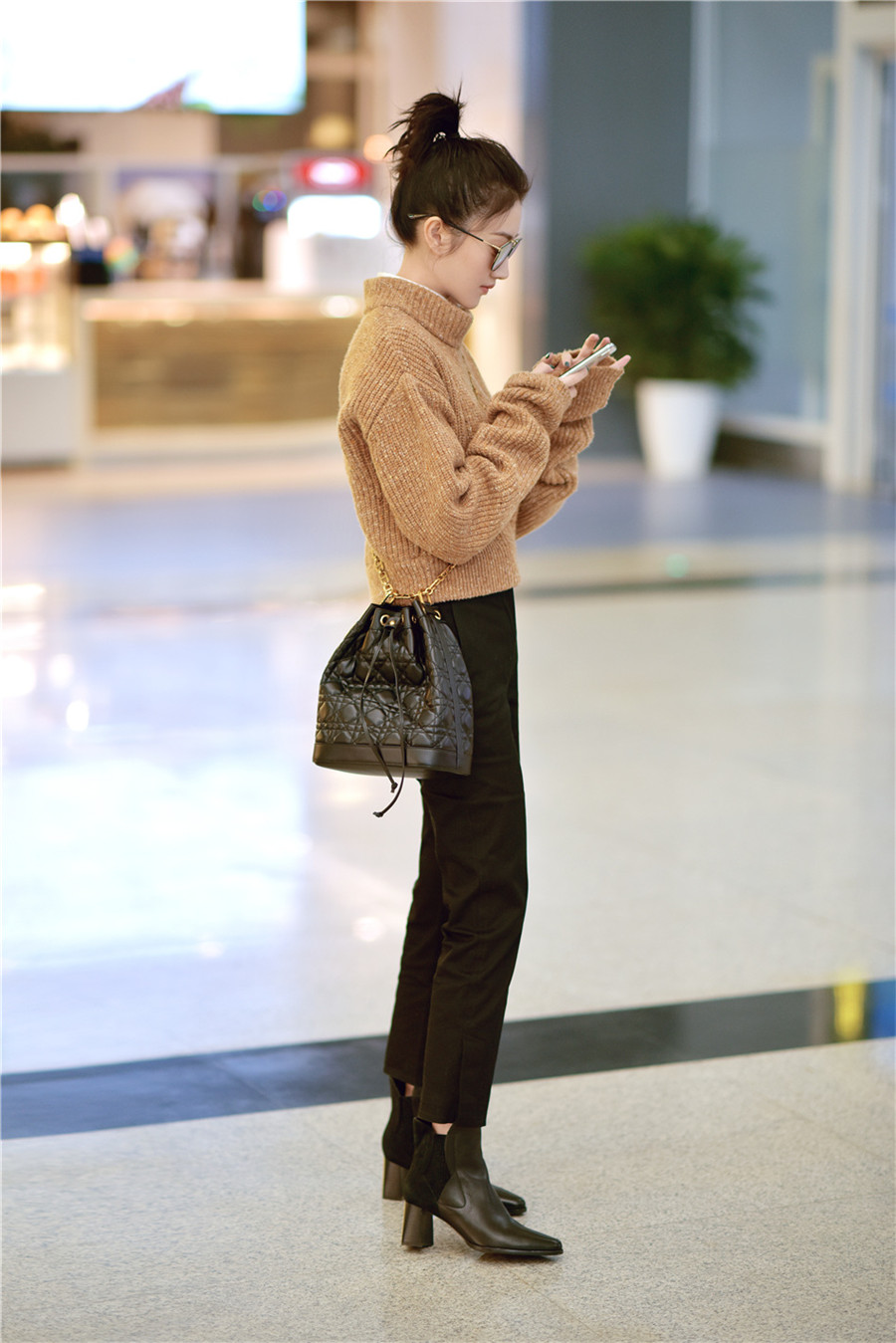 景甜丸子头现身机场 整套look时髦不失俏皮