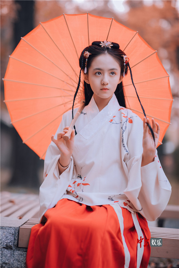 中工娱乐2018年11月15日报道 近日,11岁小演员张格曝光了一组秋冬汉服写真大片。照片中,格格身着经典白衣红裙汉服,或手拿一片枫叶、握一支长萧,或手持一柄油纸伞,在满目秋色的古典庭院里温婉而立。格格五官小巧精致,一双眼睛格外明亮清澈,抬首凝眸间自成一画,低眉浅笑中自带纯净婉约的古典气质,与周围古香古色的水榭长廊满园枫叶相得益彰,惹人心动。