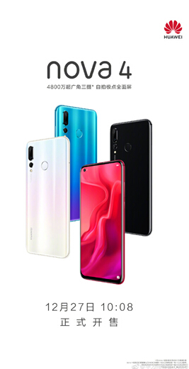 12月27日,nova4正式开售,这部颜值与实力并存的手机还不入手嘛!