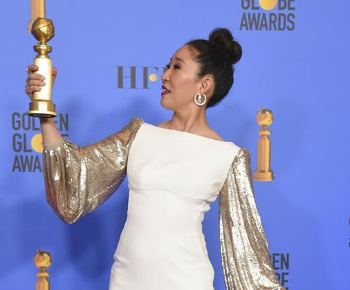 1月6日,在美国洛杉矶贝弗利山,凭借《嗜血娇娃》成为电视类剧情类最佳女主角的韩裔女星吴珊卓与奖杯合影。新华社/路透新华社洛杉矶1月6日电(记者高山)第76届美国电影电视金球奖颁奖礼6日在洛杉矶举行,在电视类奖项评选中