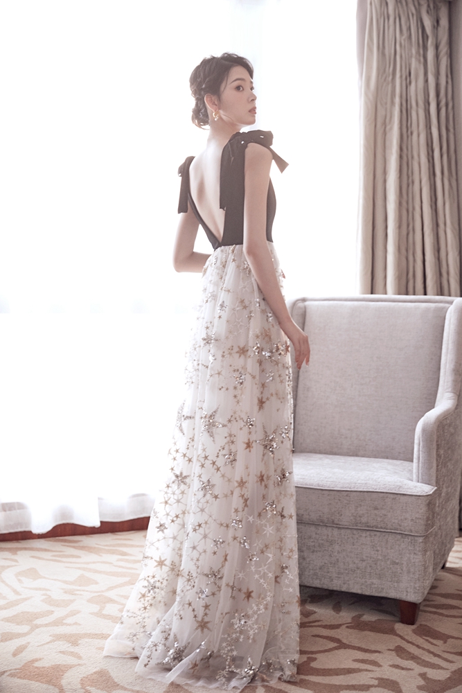 陈瑶黑色丝绒刺绣纱裙出席活动,及地礼服衬得整个人大方优雅,高贵中透露着丝丝妩媚气息,复古波浪盘发,露出精致五官,尽显温柔气质,钉珠亮片很好的综合了丝绒面料的质感。