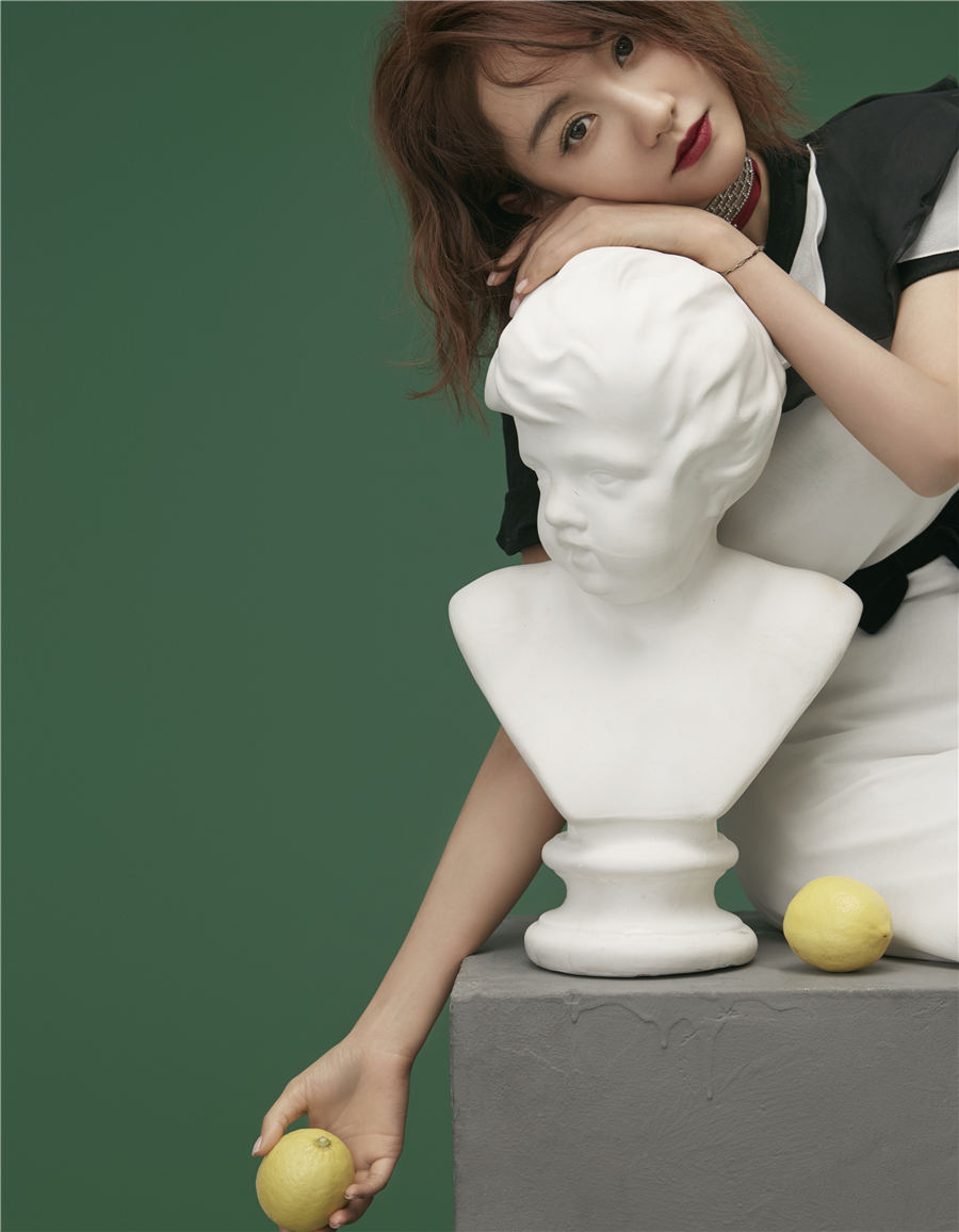 近日,杨蓉曝光一组写真大片,照片中,杨蓉妆容精致,深棕色齐肩短发衬托白皙肤色,搭配豆沙色口红御姐范十足;白色荷叶边衬衫与绿色背景相互映衬,为冬日增添一抹生机。