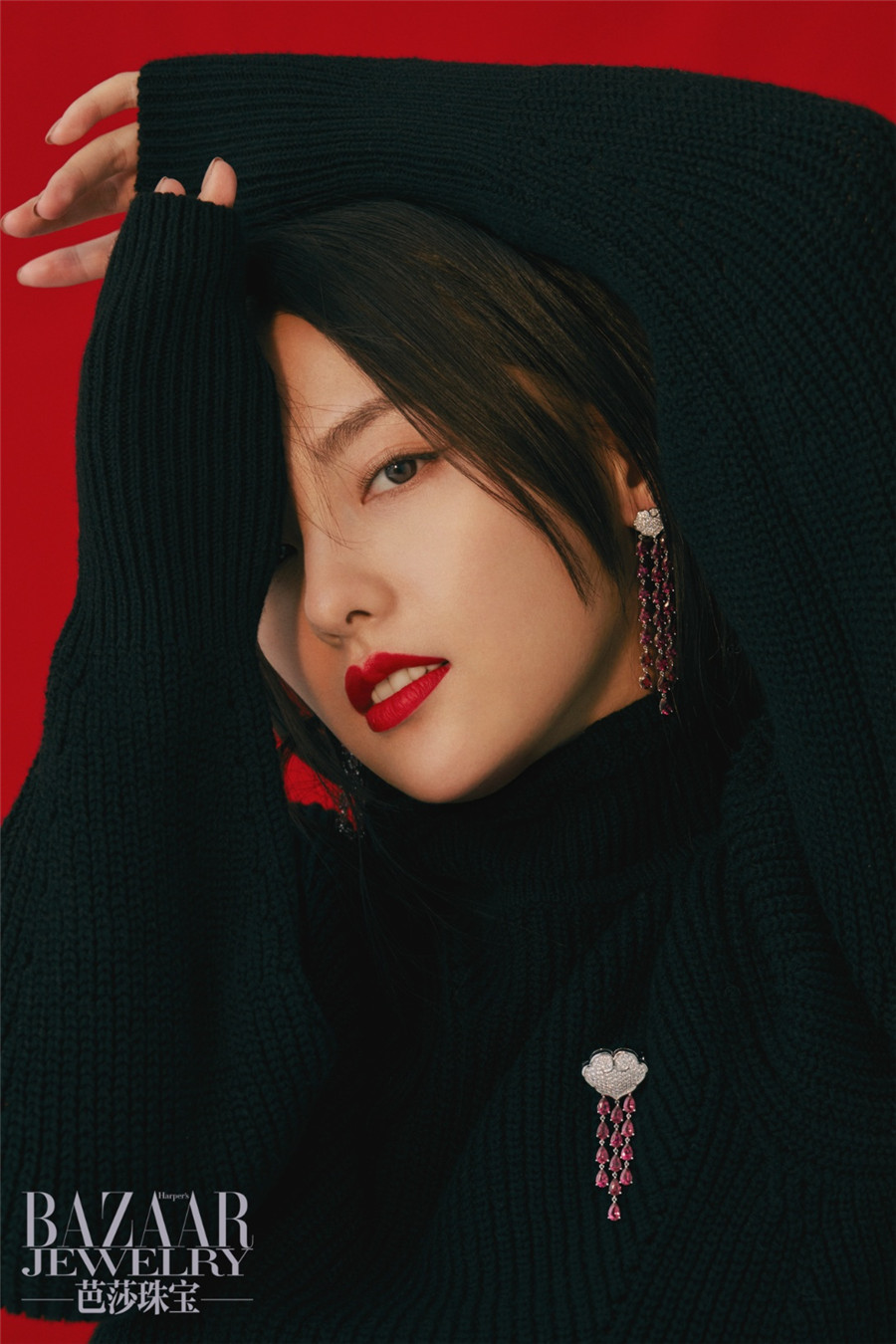 近日,演员张嘉倪曝光一组时尚大片,张嘉倪精致妆容搭配红色双唇温婉动人风情万种;整组照片中,张嘉倪以黑红拍摄背景为主,无论是黑色高领毛衣,还是简单大气白色连衣裙,张嘉倪都完美驾驭,展示不凡的时尚掌控力。