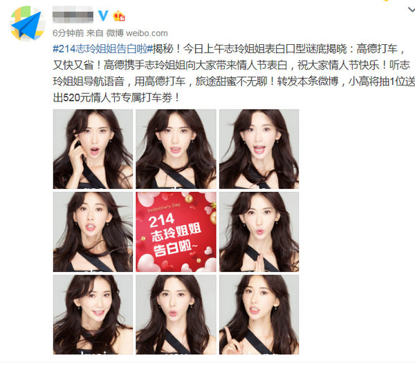 作为高德地图的代言人,林志玲语音包一直深入人心,也是明星语音导航的标志性声音之一,不仅是司机朋友行驶路上的好朋友好帮手,更在广大网友心目中颇具人气。所以在情人节这一天,志玲姐姐选择以一种轻松娱乐的形式向网友们告白,祝福大家情人节快乐。