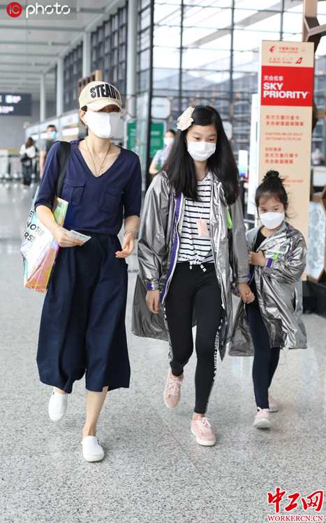 2020年7月8日,上海,马伊琍带两个女儿现身机场。(本组图片来源东方IC,版权作品,请勿转载。)