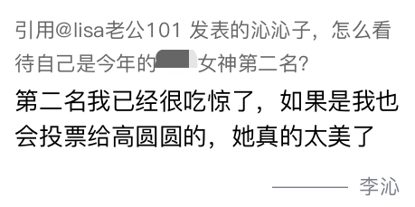 原标题:李沁回应女神大赛拿第二名:我也会投票给高圆圆