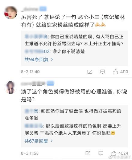 随着《三十而已》迎来顾佳许幻山离婚的高潮,观众们对剧中的小三角色“林有有”恨得直咬牙。5日,有网友归纳了林有有的扮演者张月的微博评论区和许幻山的扮演者李泽锋的微博评论区,画风全然不同。