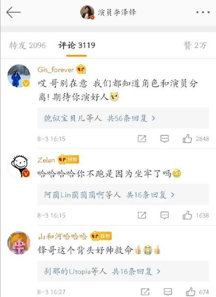 但是男演员李泽锋的微博评论区却很友好,大家都非常拎得清,还夸他很帅气,演得有层次。