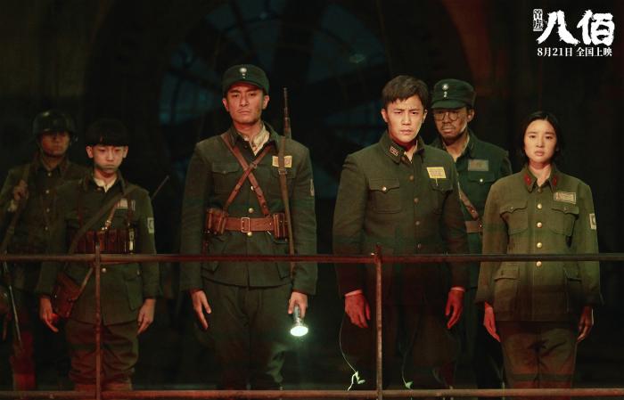 这部大体量、大制作的电影,没有把镜头对准某一个英雄主角,而是在战争中挣扎的士兵众生相:不仅有谢晋元、山东兵这样的正派军人,还有怕死的老算盘、老兵油子羊拐、被骂“瓜怂”的老铁、几次想跑的端午……