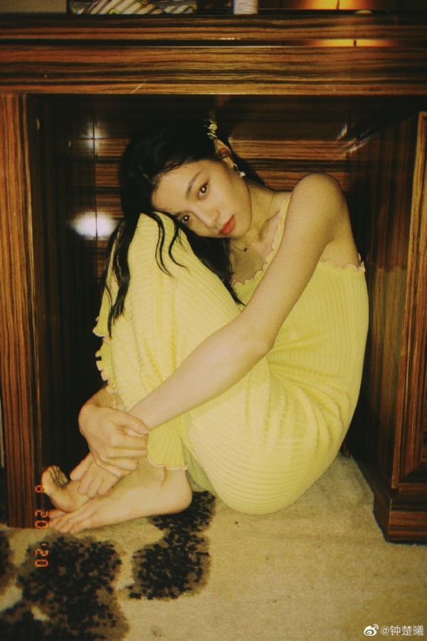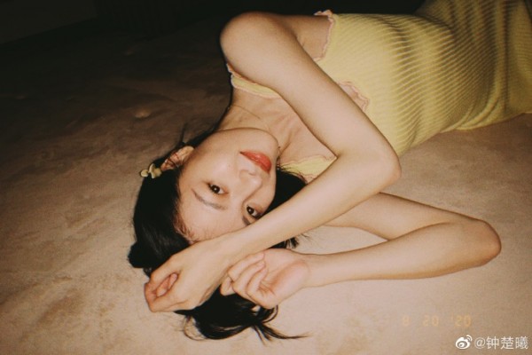 13日,钟楚曦在微博更新9张美图,并配文:“送你一朵小雏菊。”照片中的她身穿奶黄色针织长裙,修饰出小蛮腰,露出精致锁骨。她黑色秀发披肩,躺在地毯上摆出各种姿势拍照,性感诱人。