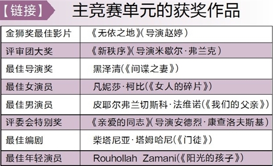 当地时间9月12日,第77届威尼斯国际电影节在水城威尼斯利多岛落下帷幕。由赵婷执导,弗兰西斯·麦克多蒙德主演的电影《无依之地》获得最佳影片金狮奖,赵婷也成为第一个凭借作品获得威尼斯金狮奖的华人女导演。