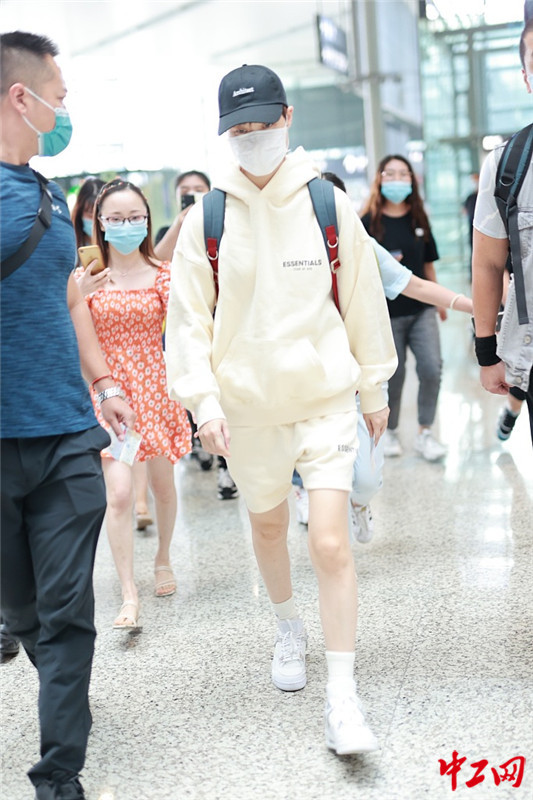 2020年9月16日,上海,李宇春现身机场。她穿米色卫衣短裤套装干练酷劲十足,背双肩包赶路青春似高中生,与“玉米”们热情挥手。(图片来源:视觉中国)