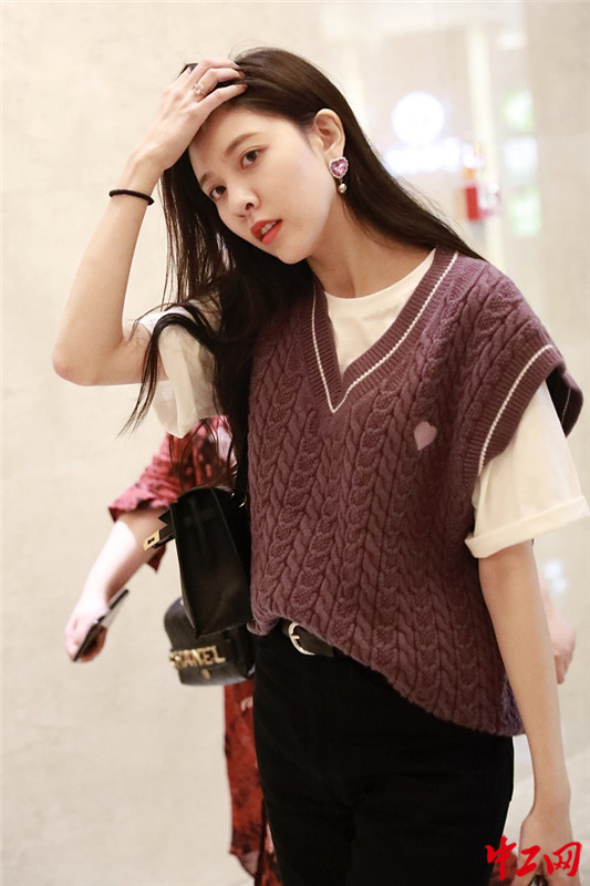 2020年9月15日,湖南长沙,宋妍霏现身酒店,准备湖南卫视节目录制。她身穿针织背心搭配黑色长裤造型清爽,撩发羞涩笑满满女人味。(图片来源:视觉中国)