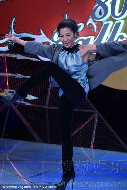 搜狐娱乐讯 上海,8日,53岁“功夫女郎”杨紫琼做客王自健脱口秀新一期节目录制,亲自教学王自健金鸡独立与功夫剑法,看来这些年过去,杨紫琼依旧很能打,她主演的《卧虎藏龙:青冥宝剑》也定于2月19日上映,看来电影的打斗镜头真的是真打。节目录制中谈及比自己大17岁的法拉利总裁准老公时,53岁的杨紫琼也顿时变少女,投入王自健怀抱中卖萌撒娇变成少女,看来爱情的力量真的是无限的,订在2016年会与法拉利总裁Jean Todt结婚。
