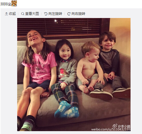 今日上午,李小鹏通过微博晒出一张爱女奥莉的萌照,并配文称:“好大一块cheese(芝士)”……