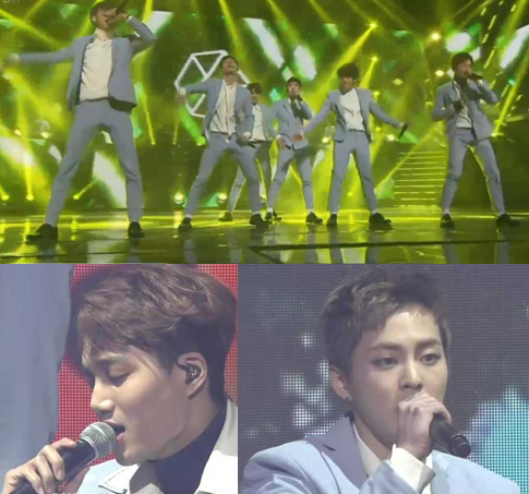红毯时没有现身的正信,在演出时帅气出场,奉献了乐队顶级Live。EXO在获奖后,表演了《Sing For You》和《Love me Right》,抒情与动感结合,秀珉和KAI因为受伤,全程坐在椅子上表演,也丝毫不影响粉丝的热情。