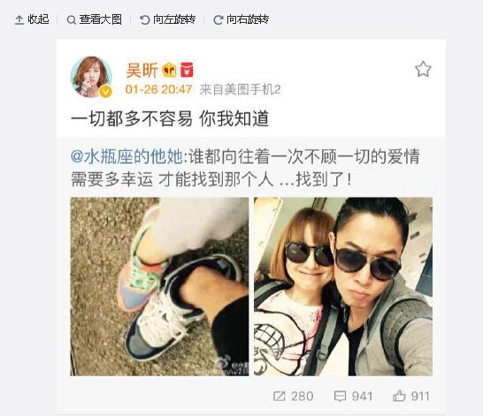 吴昕微博晒“恋情” 疑遭前任盗号报复(图)
