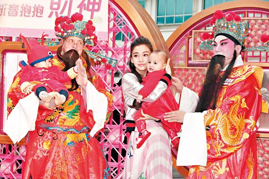 Baby昨天到尖沙咀出席《新春抱抱财神》活动,连续八年参与活动的她,在活动上除与中西财神拖手抱抱合照外,又亲了扮成猴子的小男孩一口,之后又抱起财神宝宝,最初宝宝不肯给她抱,之后Baby又哄又摸, 母爱泛滥。