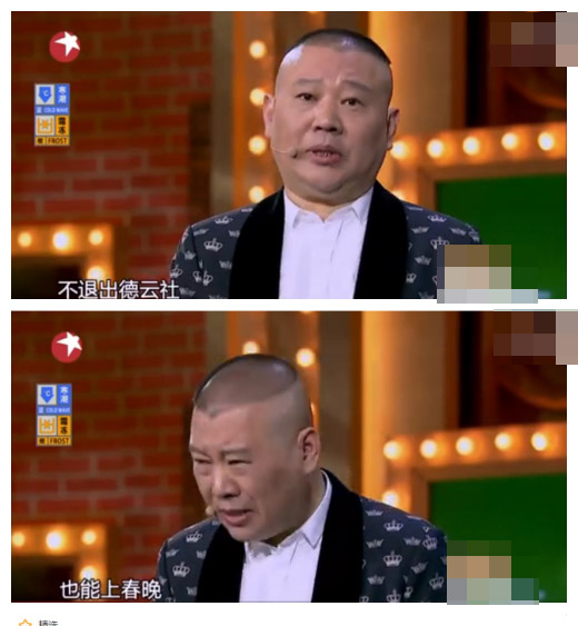 原本只是一件很正常的事情,毕竟春晚历来如此,临上场前被毙也是常有的事儿。巧合的是在上周播出的《欢乐喜剧人》第二期淘汰赛中,作为岳云鹏师父的郭德纲在采访爱徒时,毫不吝啬地称赞“这个年龄段说相声的,应该没有比岳云鹏更红的了”,还十分骄傲的说道“他现在特别好,春晚都上了”,甚至还现场放话“你看不退出德云社,也能上春晚”。言语间尽是对徒弟岳云鹏满满的爱,但也疑似向退出德云社的弟子示威。然而,时隔三天,岳云鹏的节目即被央视春晚毙掉,师父郭德纲进而被明晃晃打脸。