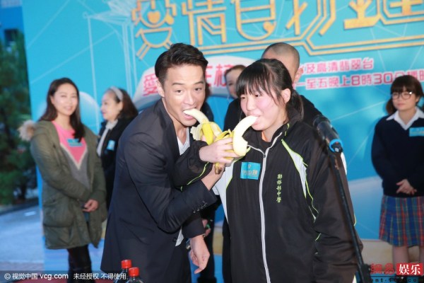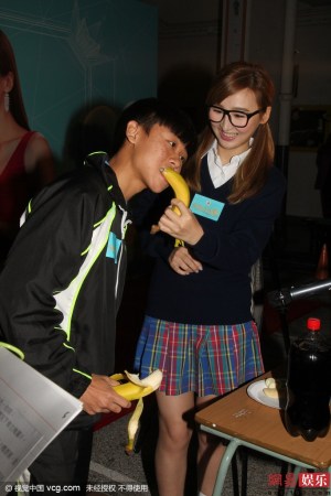 高海宁宣传新剧 与男学生对吃香蕉