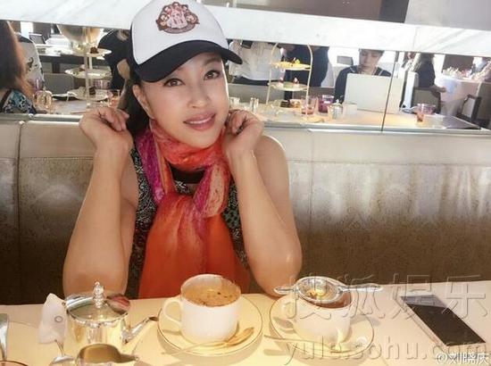 刘晓庆悉尼歌剧院旁享下午茶 笑容甜美活力十足