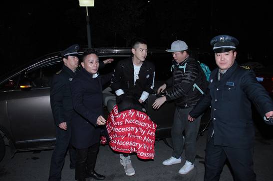 搜狐娱乐讯 近日,吴亦凡现身合肥参加2016年安徽卫视春晚节目录制。他在车内遮棉服御寒,抵达录制现场时下车后见镜头马上拿掉棉服耍帅。众多保镖手拉手筑人墙为其保驾护航,人气超旺。
