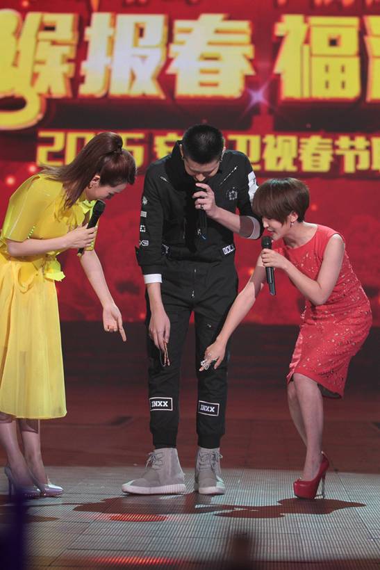 台上,吴亦凡当着两位美女主持谢楠和周群的面抬腿证明自己穿了秋裤,而他也当场获赠秋裤,没有枉费粉丝一片苦心。