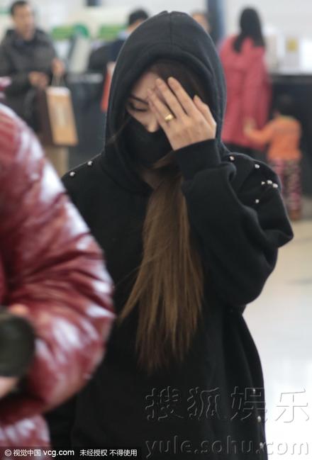 昆凌口罩遮面现机场 见拍照忙用手遮挡晒婚戒