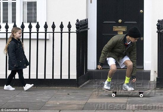 贝克汉姆带萌娃出街 小七长发及腰呆萌可爱