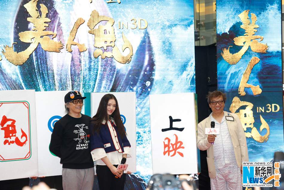 周星驰携林允宣传 集体贴“美人鱼”窗花(组图)