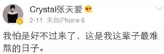 2月1日 ,张天爱在微博上晒出一组打沙袋照片,并写道: “老公就想拍打戏,小年快乐。