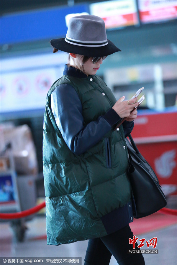 袁姗姗梳清爽短发撞脸孙俪 穿牛仔服爽朗大笑(图)