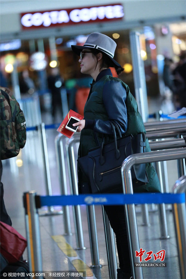 袁珊珊手机一路不停看 背着大牌包现机场(高清组图)