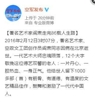 于文华发微博称:阎肃逝世微博不实 向老人家道歉