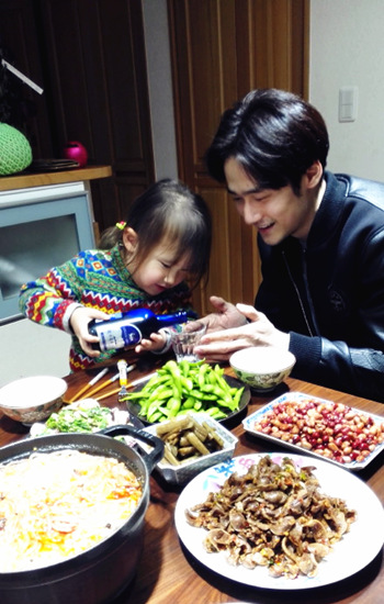 随后,蒋劲夫又发布了一条原创消息,称:我肉吃高兴了。并PO上了四张图片,在这些照片中,只有3岁半的胖肉举止天真可爱,开怀大笑,手舞足蹈,看起来十分开心,而在最后一张两人的合照中,蒋劲夫又一次丢掉了偶像包袱秒变表情包,化身“胡茬叔叔”与小女神卖萌自拍。