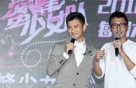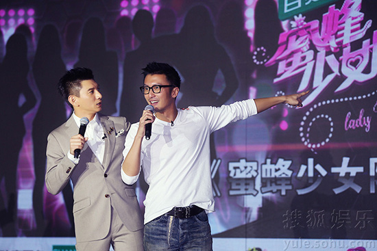 真人秀节目《蜜蜂少女队》在澳门举办发布会,吴奇隆、谢霆锋携蜜蜂少女亮相。