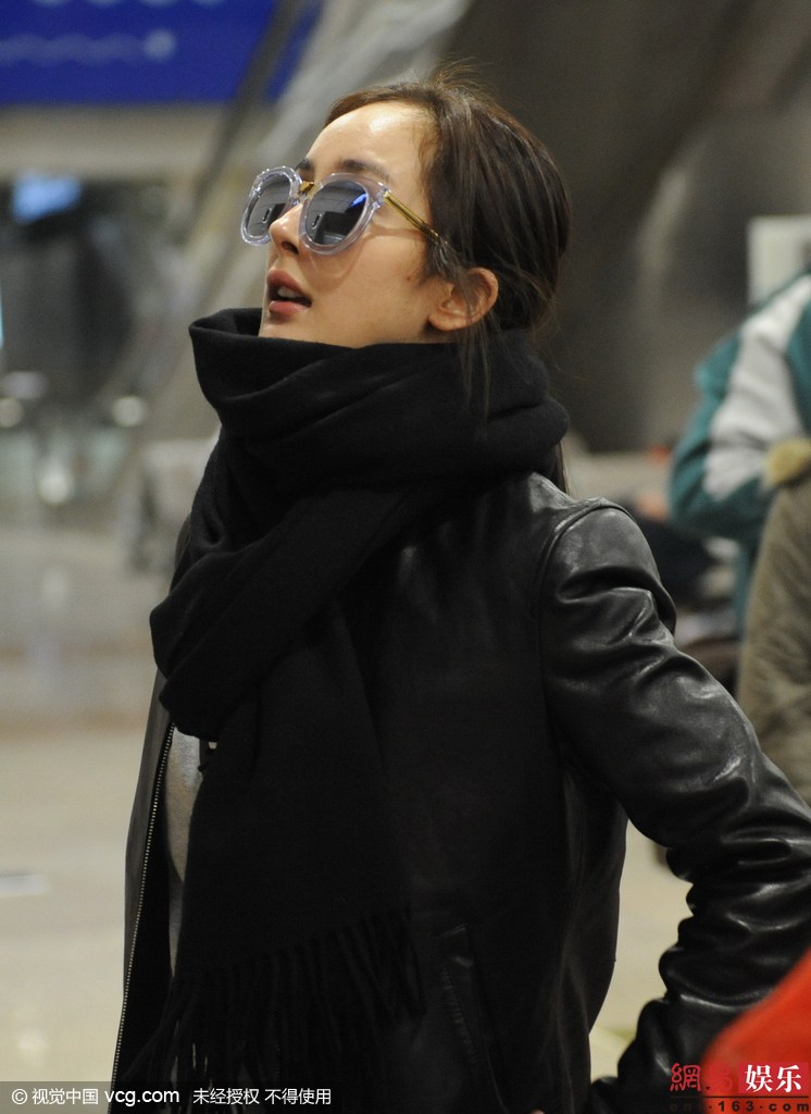 杨幂现身机场对镜头挥手 卡通卫衣套黑色棒球衣(组图)