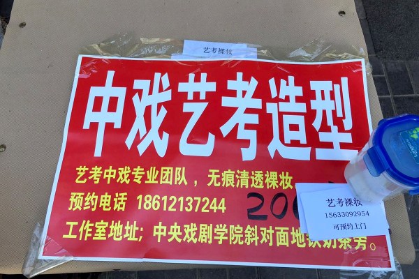 中戏门前“艺考无痕化妆”招牌