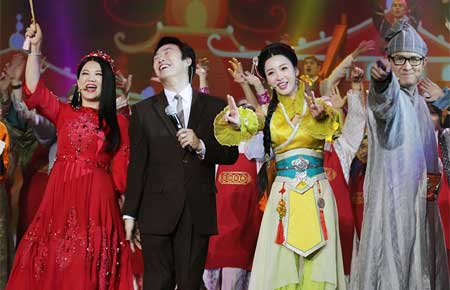 江苏卫视今年的元宵晚会主打“抖包袱”的功能,可谓是新意十足。在颇有大电影风格的开场后,身着古装扮相的李湘、柳岩、彭宇 、黄艺馨四人以“元宵包袱铺”里的老板娘、厨娘、账房先生、跑堂小二的造型欢笑登台。情景剧的新颖模式,将所有的节目串联起来,既有欢快的喜乐气氛,又反应时下最为流行的社会问题。