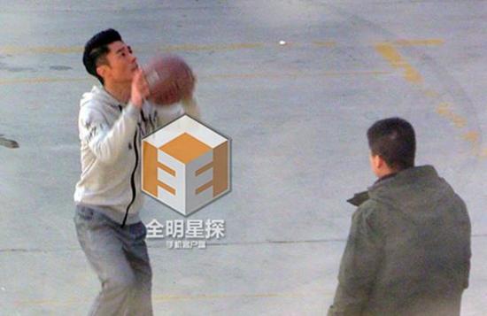 霍建华拍戏之余秀球技 帅气投篮动作标准
