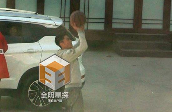 霍建华拍戏之余秀球技 帅气投篮动作标准