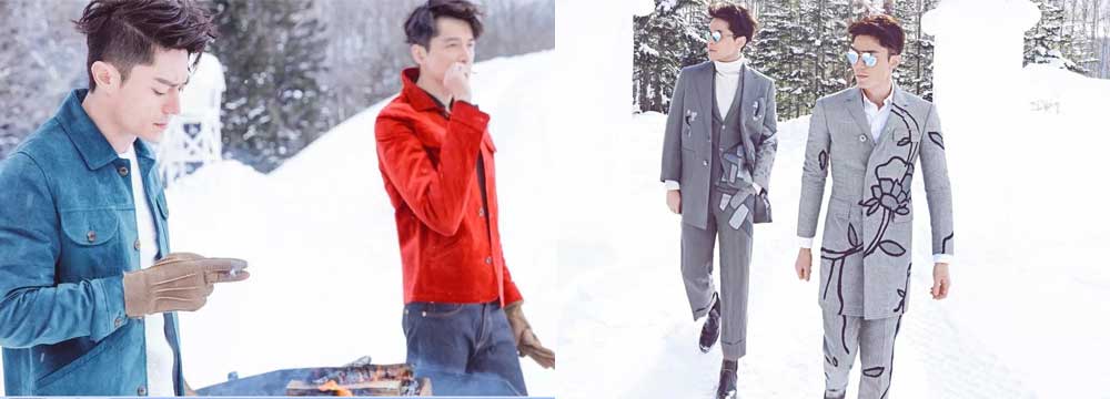 组图:胡歌霍建华雪地里“撒了个野” 同款风衣笑容温暖