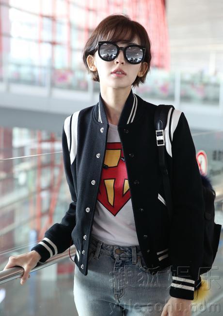 古力娜扎现身前往米兰时装周 棒球外套尽显帅气