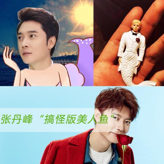近日,演员张丹峰晒出手捧一只半男身半鱼玩偶的照片,还ps了自己的人鱼造型,搞怪逗趣。