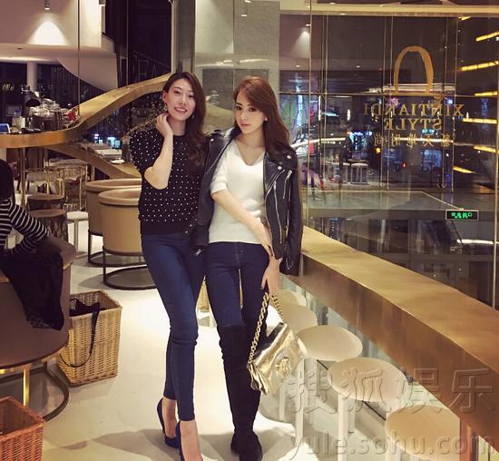 方媛与女性朋友合影,朋友也是大长腿呀!