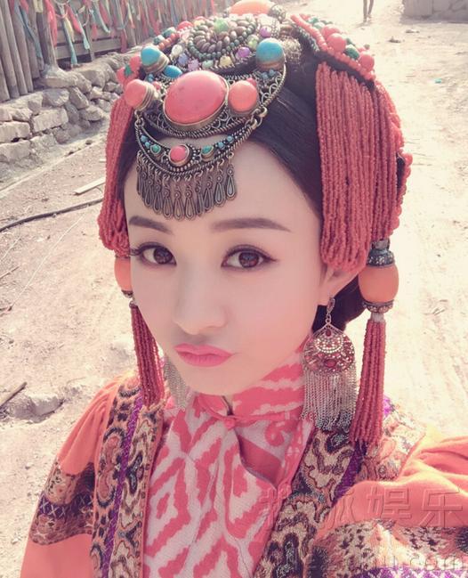 高颜值!赵丽颖晒自拍 民族风红艳逼人